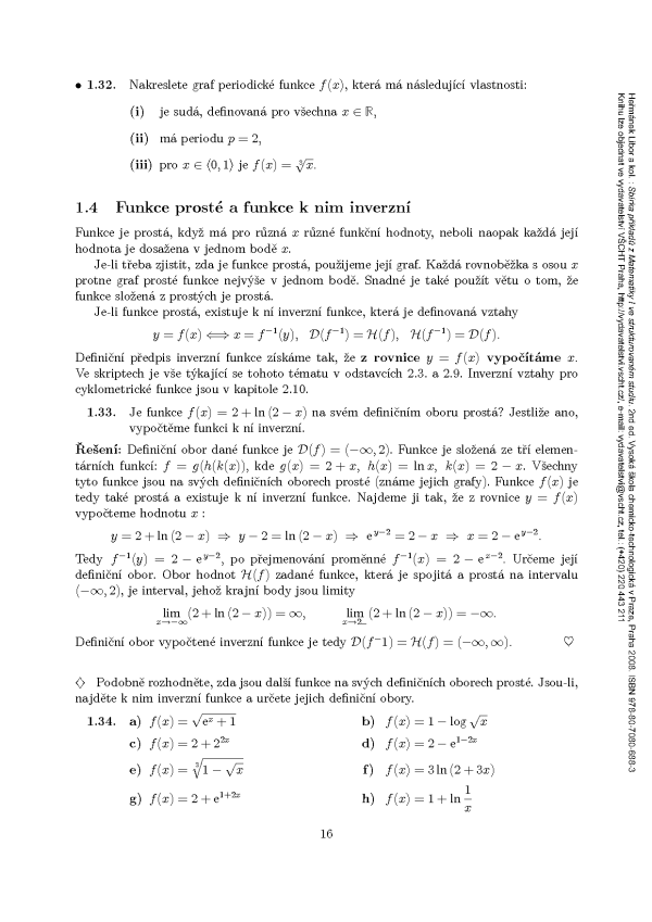 | Kapitola 1: Základní vlastnosti funkcí jedné reálné proměnné |